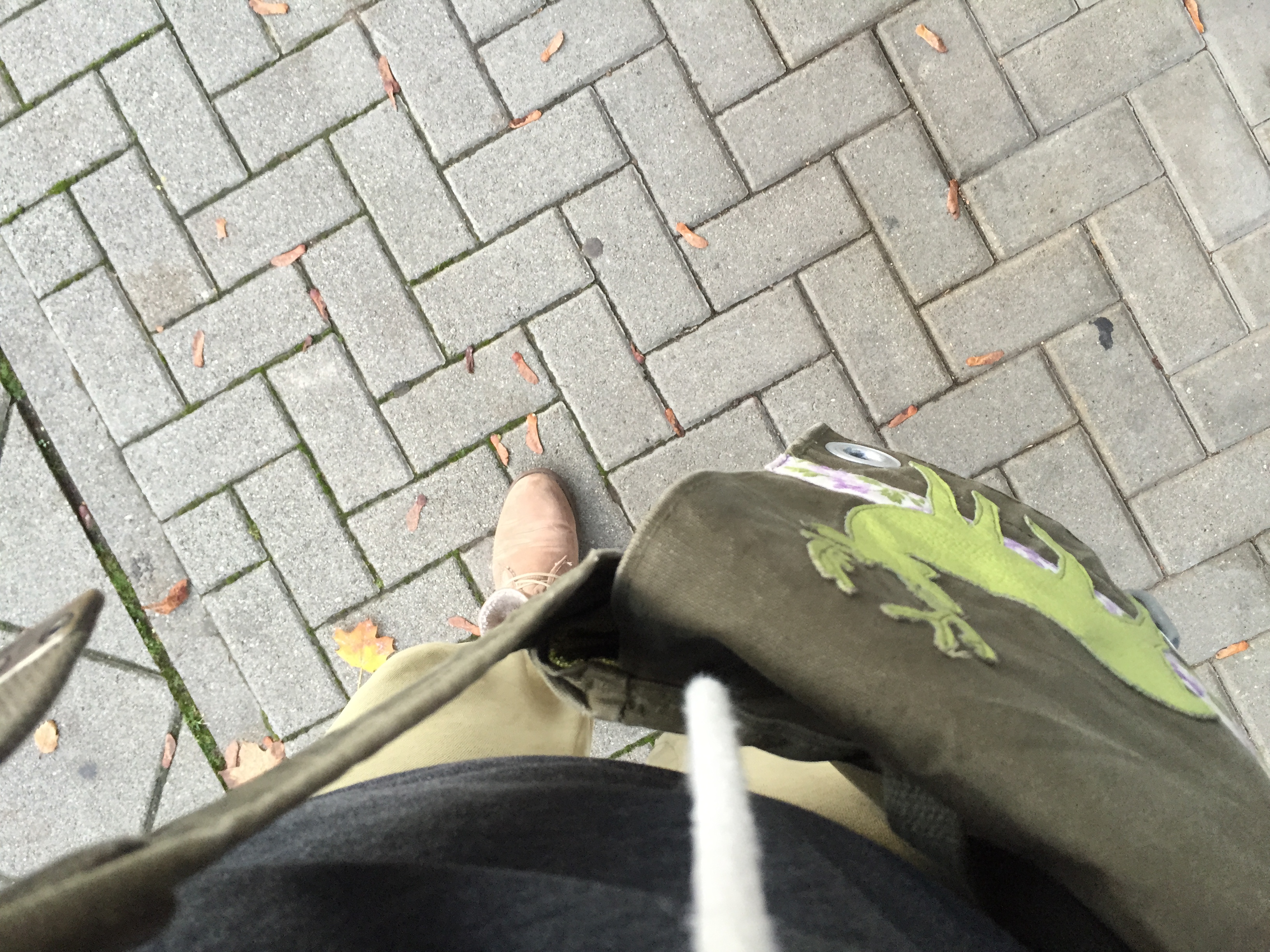 Mamasch ist Brötchen-holen im Waldelfen-Outfit. Ich fühl mich wohl. Meine grüne Nicki-Hose, der Naketano-Hoodie und meine Kameraden-Handtasche mit Hirsch. Super. Und irre praktisch im Alltag mit zwei Kleinkindern und Herbst.