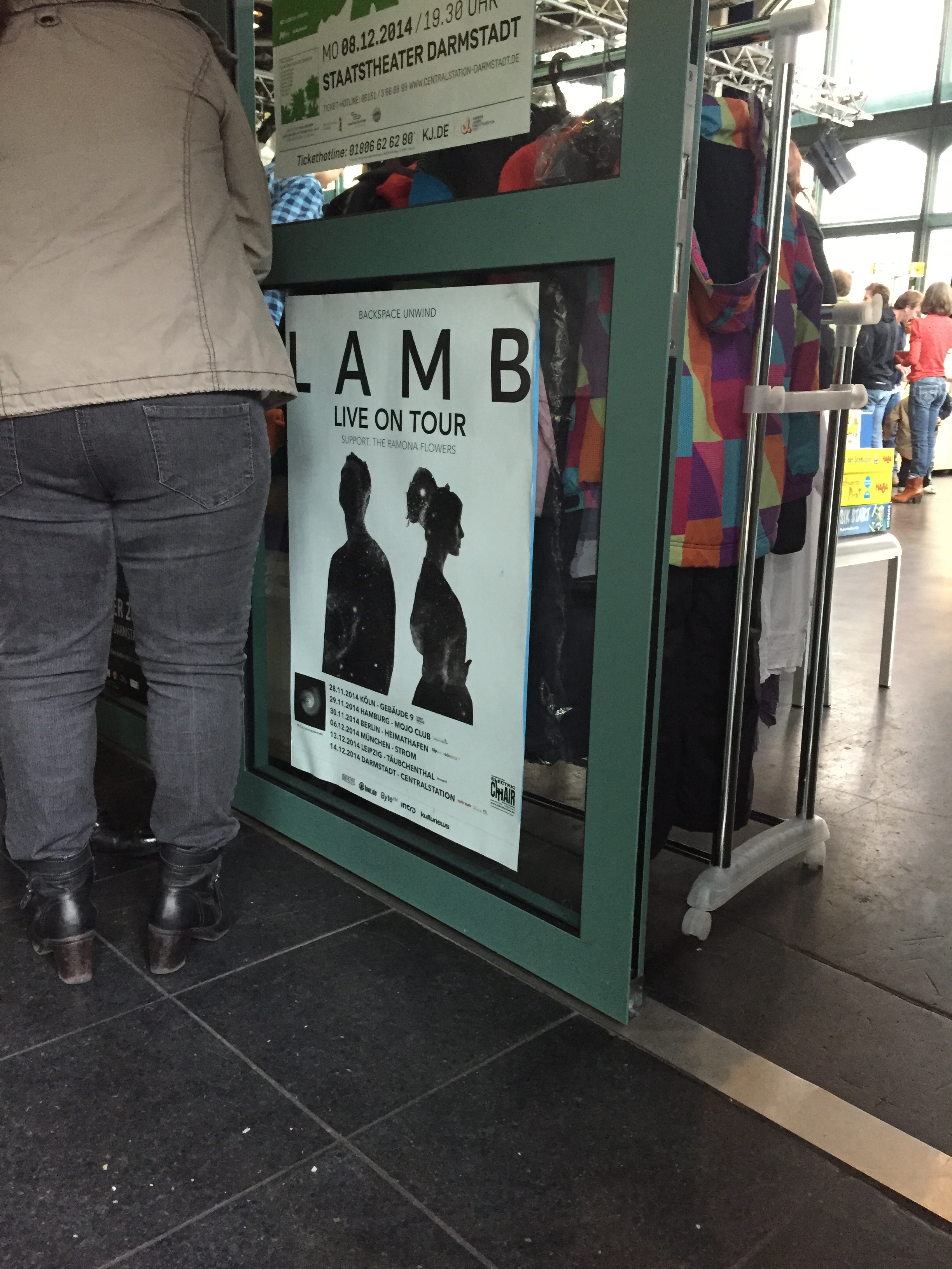 Im Vordergrund das Plakat zu einem Konzert, zu dem ich schrecklich gerne gehen würde (Lamb gibts noch????? Ich wußte das gar nicht!?!). Und im Hintergrund der Eingang in 40min-Drängeln-und-schieben-und-mit-gefüllten-Taschen-rauskommen. Und wieder hatte ich Glück. Zwei schöne Winterjacken, zwei Cos-Pullis, eine Petit-Bateau-Strickjacke, Hausschuhe und genug Hosen für den Großen in bezahlbar. Dort finde ich seit drei Jahren unsere Grundlagen für Winterausstattung.