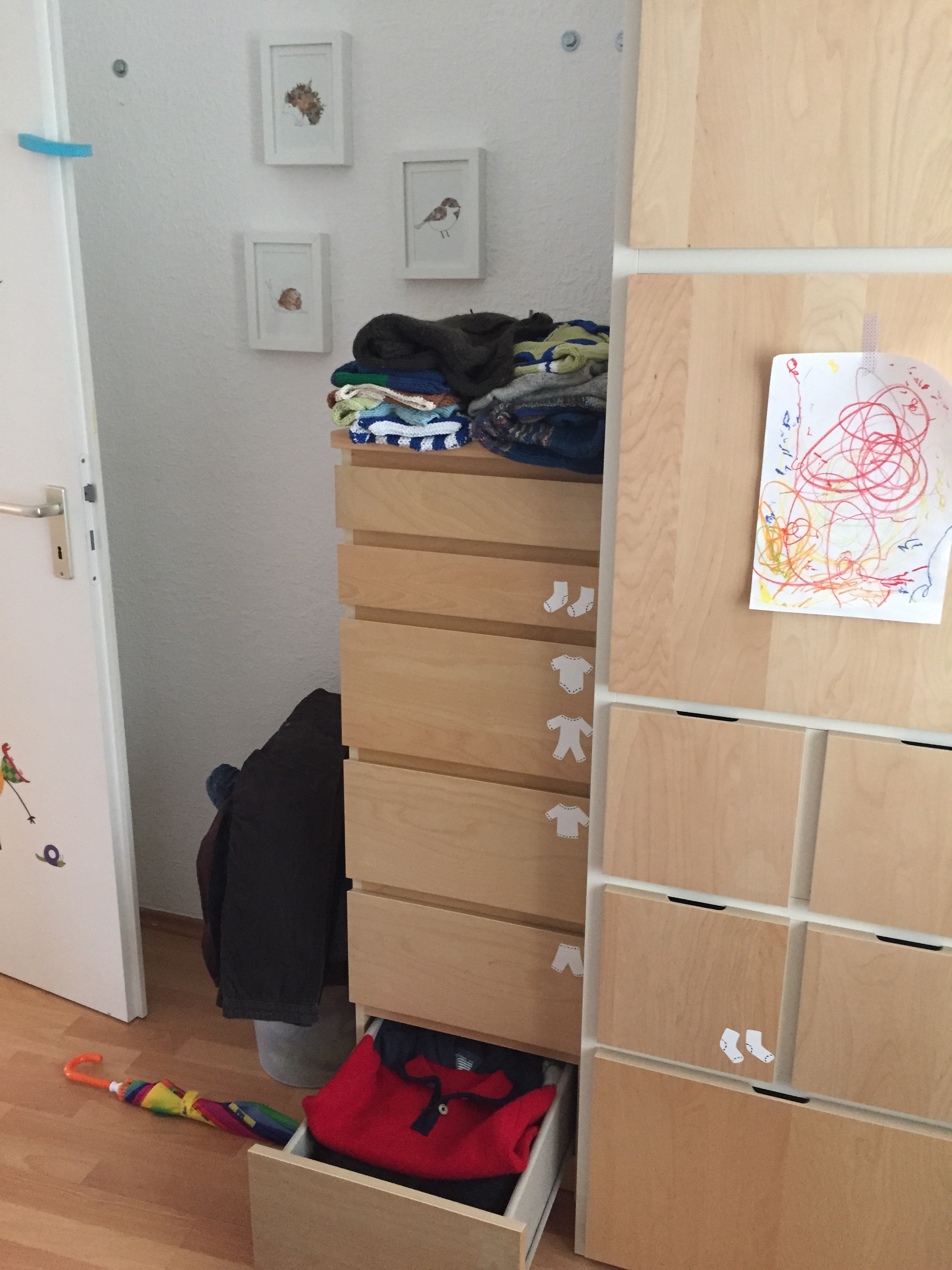 Während die Jungs Bücher gelesen haben, habe ich die Wäsche umsortiert und weggeräumt. Juhu! Wir sind vorbereitet auf den Winter! Wir haben genug Strumpfhosen, Thermoleggins, Winterjacken, Longsleeves, Hosen, Unterhemden, Pullover. Ein wirklich schönes Gefühl. Jetzt muss ich nur die Berge Wäsche waschen, die trotzdem immer da bleiben. Aber ich muss an nichts mehr denken. Findet das noch jemand so erleichternd wie ich?