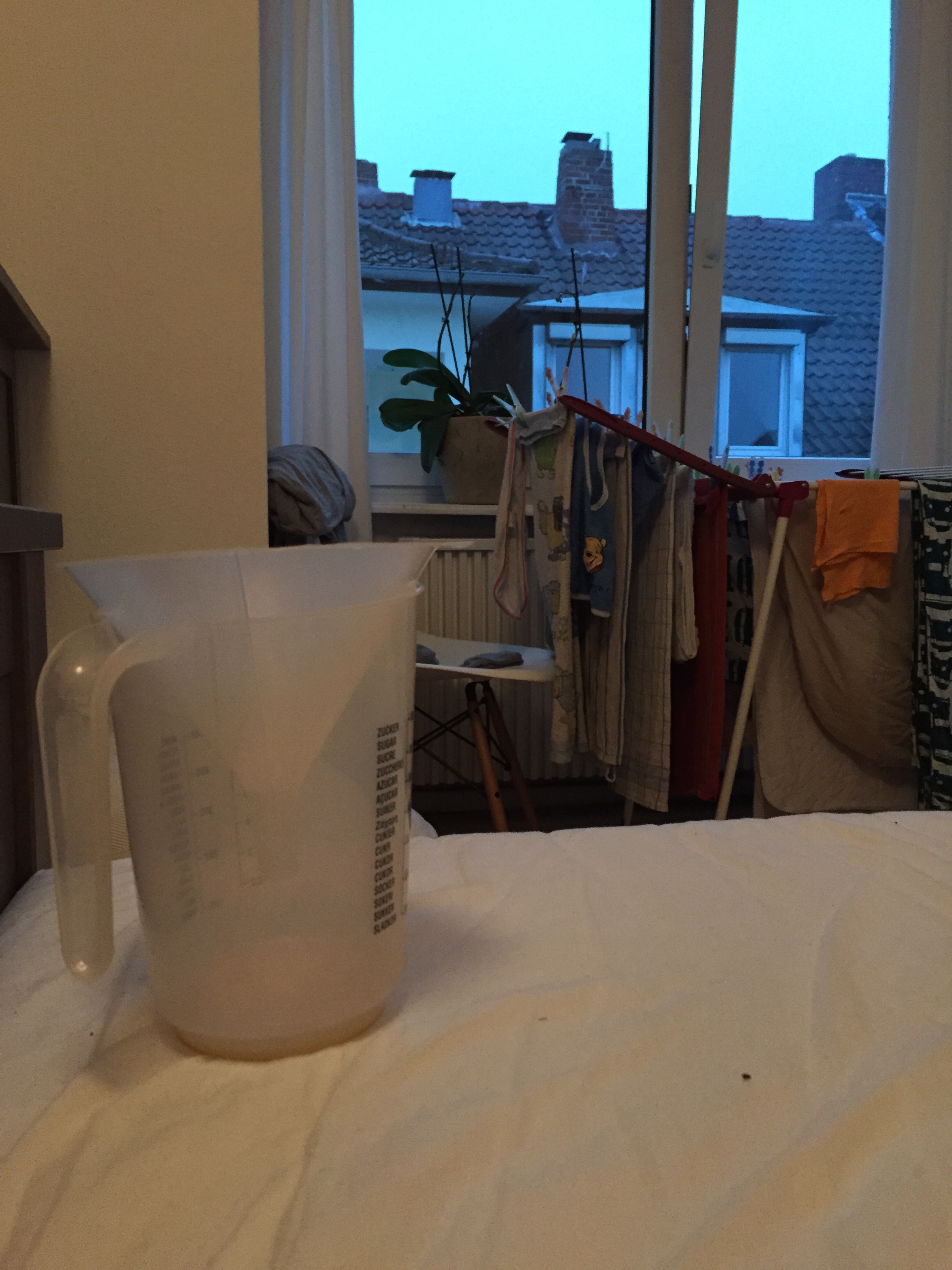 Während der Garzeit, in der ich eigentlich mit k1 ein Buch lesen wollte, klingelte unser Vermieter. Papasch hatte ihm erzählt, dass die Heizung bei k2 nicht richtig warm wird, und der gute Mann kam sofort mit seiner gesamten Lebenserfahrung und einem Entlüftungsschlüssel.. Also: wir wohnen direkt über ihm und seiner Frau. Hat Vorteile, wie in diesem Punkt, aber auch Nachteile, wie in viiiiiielen anderen Punkten.