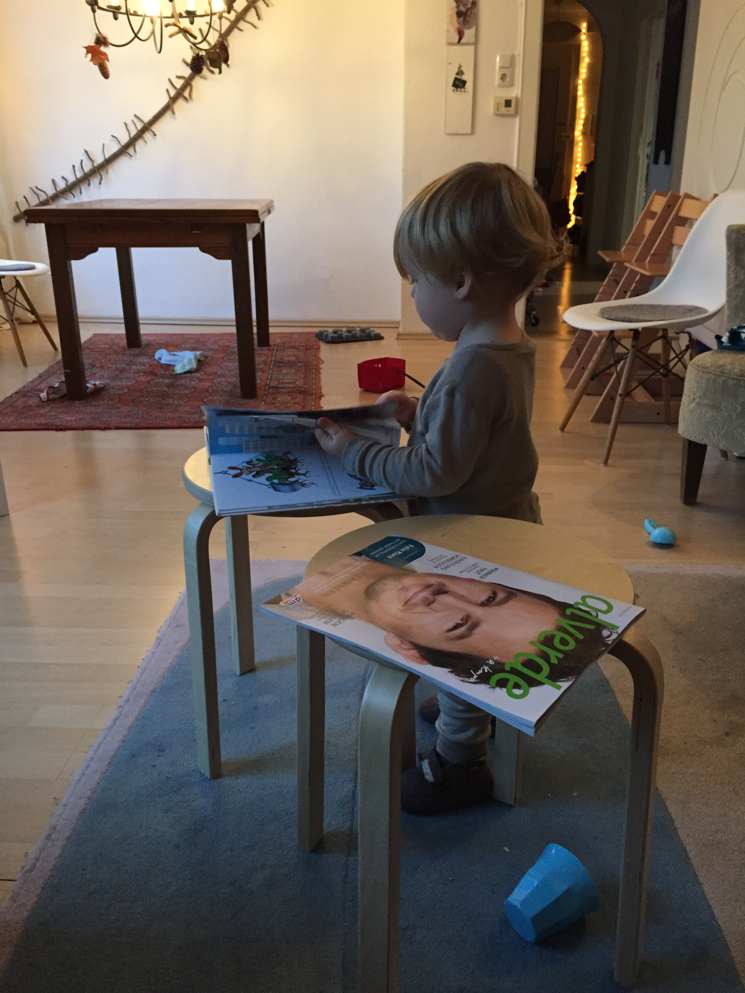 Nach dem Marktbesuch sollten die Jungs eigentlich mit Papasch in die Stadtbibliothek gehen (hab ich erwähnt, dass er gestern und heute ein paar von den wenigen freien Tagen hatte und die er sich auch anders hätte vorstellen können?). Aber k1 bemerkte bestimmt: „Nein, bleiben bei Mama. Muss kochen. k2 geht mit Papasch ‚biothek!“