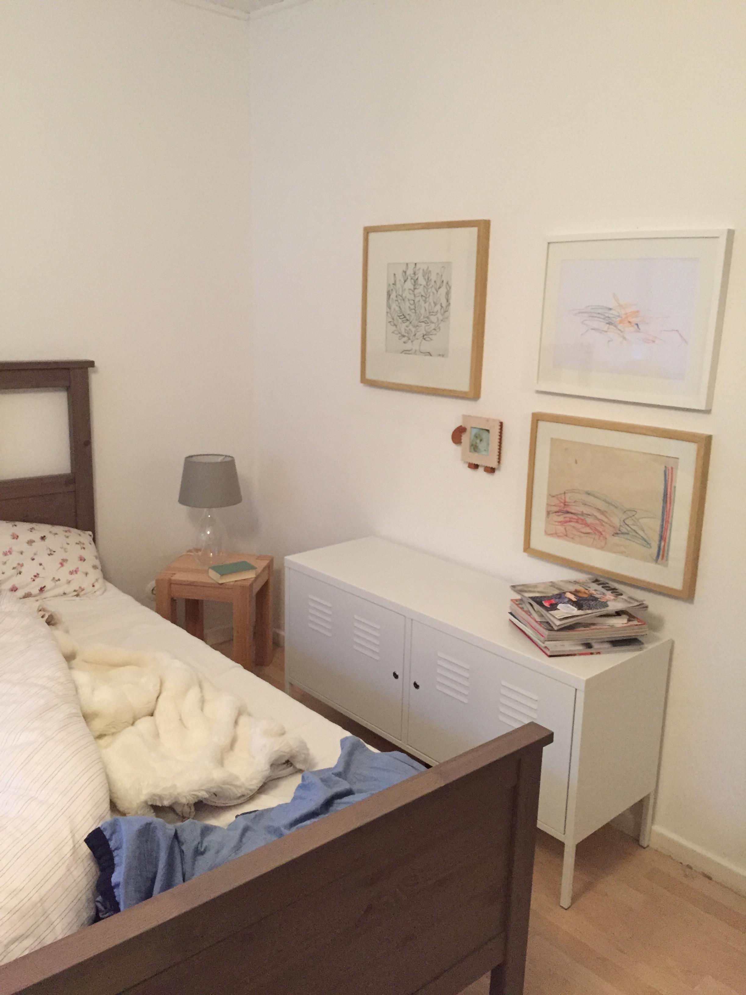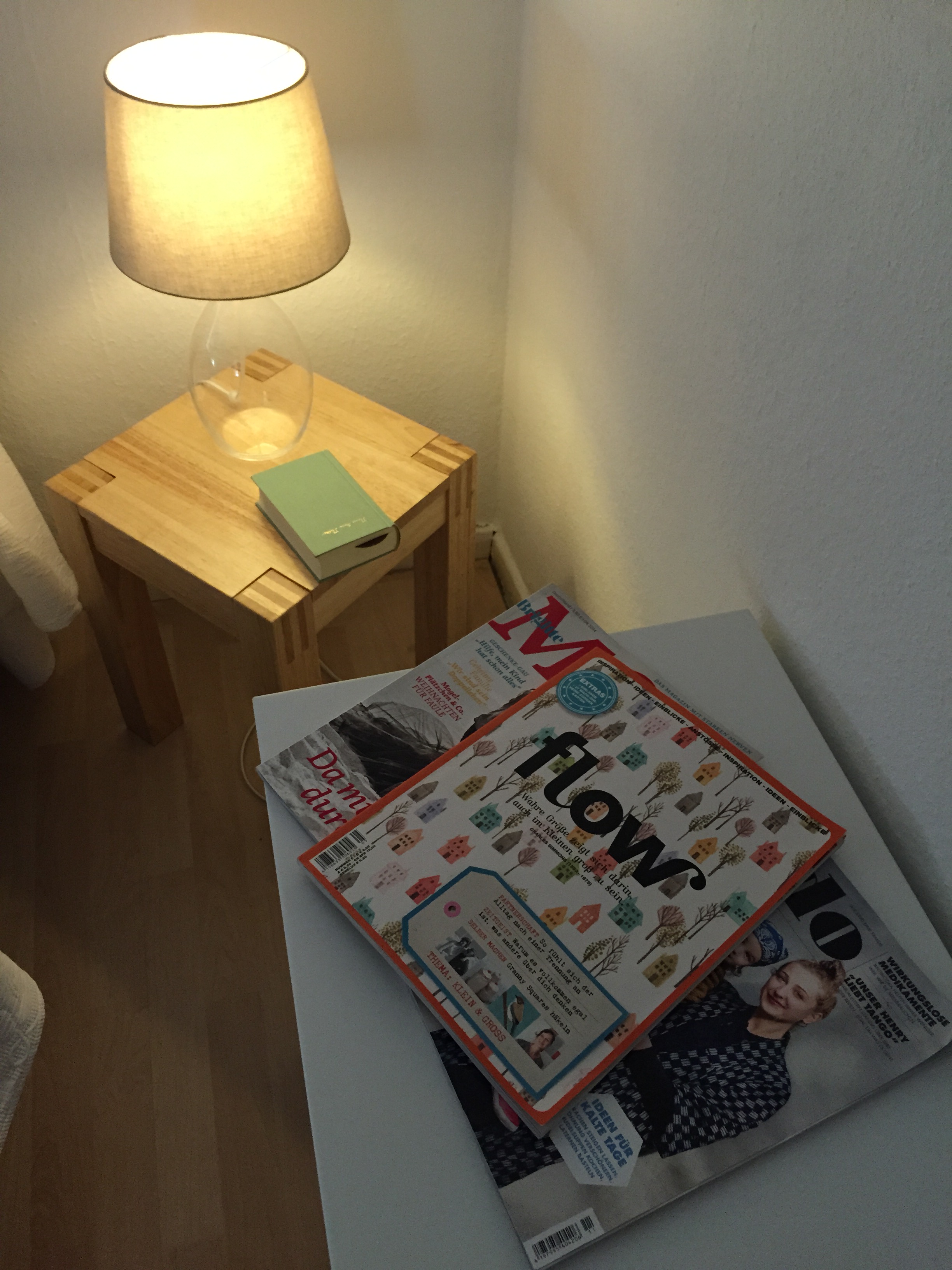 Das ist meine Seite vom Bett. Die Zen-Seite. Papasch hat das Fenster und viel Platz. Ich hab es zwar eng aber dafür leergefegt. Ich träume eigentlich von einem ganz weißen Schlafzimmer mit nur einem Farbakzent. Ein Raum, der nur zu Ruhe einlädt (oder zumindest von nix ablenkt, was sonst in einem Bett so…naja…also beispielsweise keine Wäscheständer im Schlafzimmer!). Mit hellem Boden, Yoga-Bereich…ach, ich träume…