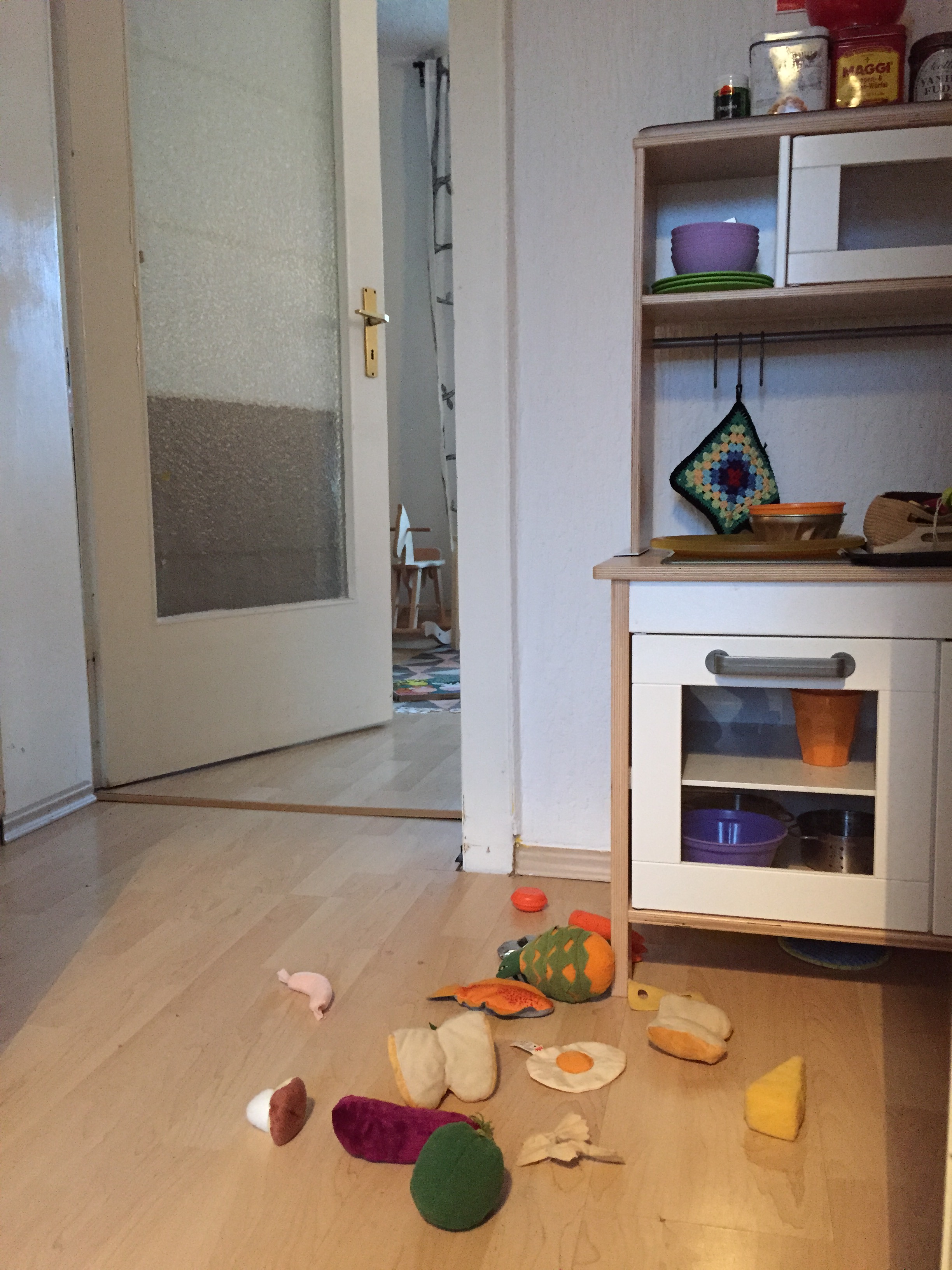 Ist gerade das liebste Hobby. Ist auch für mich schön. Immer wieder. Löffel-suchen oder Messbecher-Hockey. Wo ist das Muffinblech? Ach, ich hörs gerade…