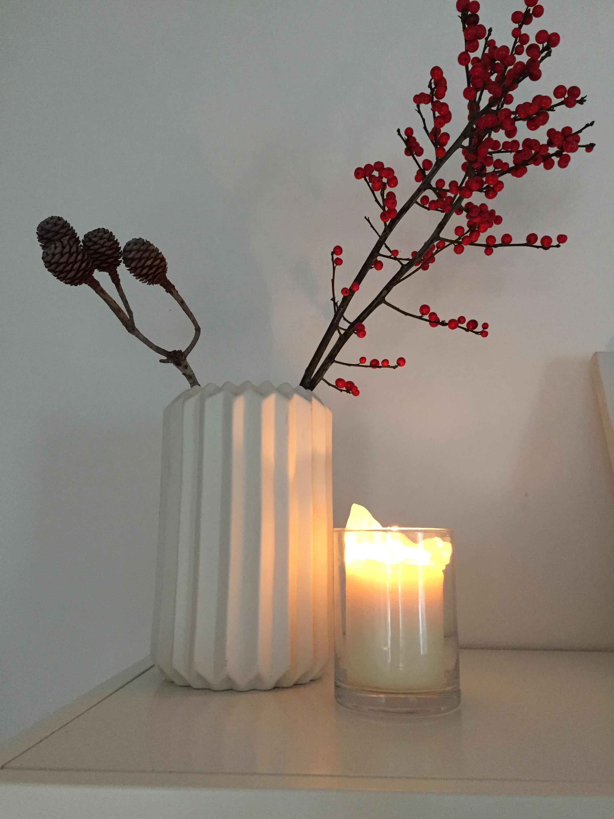 Die Blumenvase hatte ich ursprünglich als Geschenk für meinen Bruder und seine Freundin gefunden zusammen mit einer rechteckigen Kupferplatte. Aber ich fand sie so fantastisch und mir fehlt tatsächlich noch eine Vase, die sich nach oben verjüngt, dass ich mir dieselbe zu Weihnachten geschenkt habe. Hachz..
