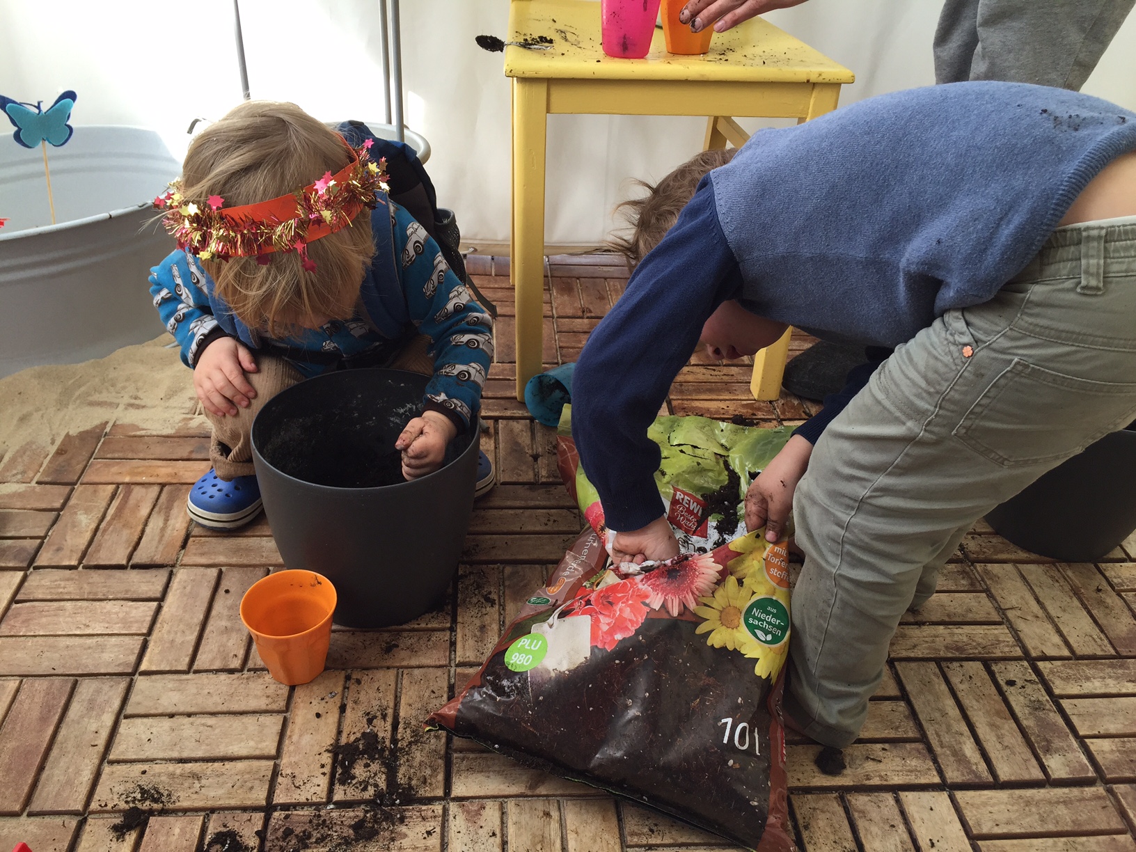 …wir haben nämlich diese Tomatenpflänzchen gezogen und sind total platt, dass es so viele sind. Alle wurden brav pikiert und jetzt stehen am Endes des Balkons nur leidlich lichtgeschützt etwa 15 Töpfchen mit kleinen grünen Stängeln. Drückt uns die Daumen, dass die weiterwachsen wollen und keinen bleibenden Schaden abbekommen haben! Die Kinder hatten lauthals Spaß und schwarze Hände und wir anschließend schwarze Fußtapsen im ganzen Haus…