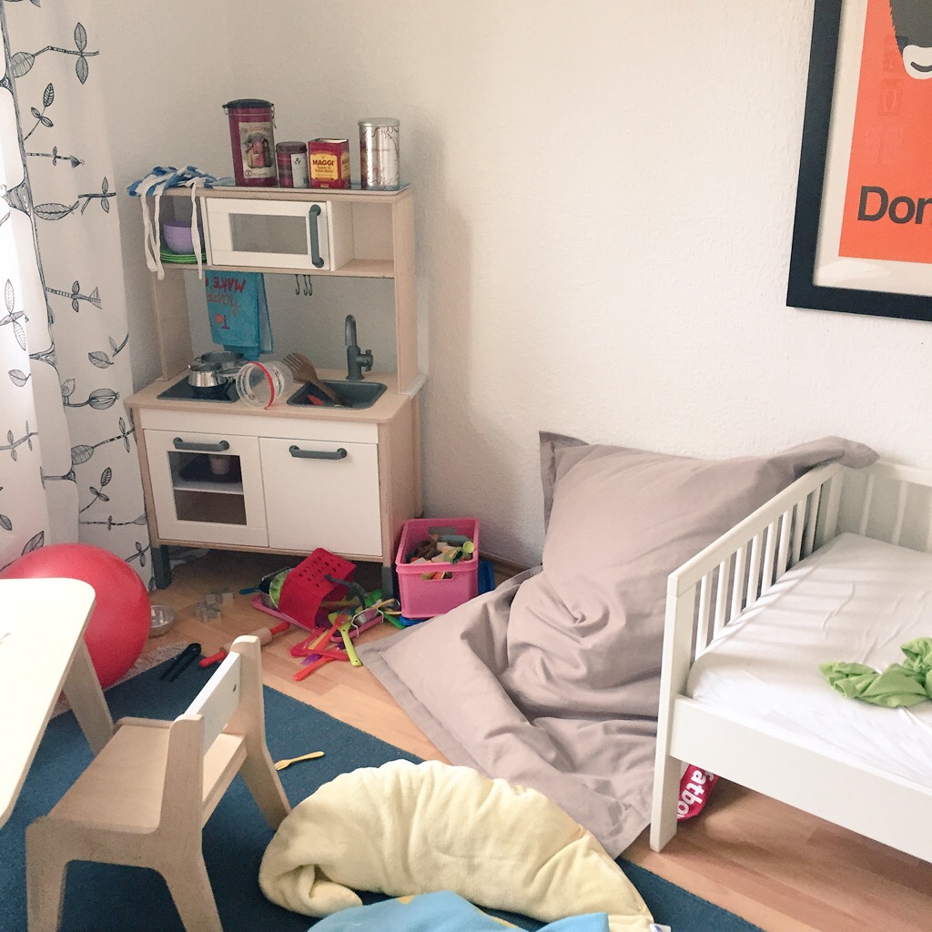 Der Start in den Tag war ordentlich wuselig. Ich rannte eigentlich nur den Kindern hinterher und hatte ansonsten keinen Überblick über den Rest der Wohnung. Papasch sollte heute die Kinder in die Krabbelstube bringen, damit ich zuhause Bürokram erledigen konnte, bevor ich zur Arbeit los musste. Nunja…als die drei aus der Tür waren, atmete ich tief durch, machte ein paar Schritte und staunte: Durcheinandernester in allen Räumen außer dem Badezimmer.