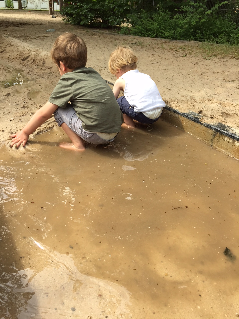 …wie ihr alle auf diesem Bild unschwer erkennen könnt, ist kein Unwetter niedergegangen. Die Jungs sind schlicht in die Pfütze gefallen. Geil wars. Patsch hats gemacht und die Kinder haben sich schief gelacht! :))