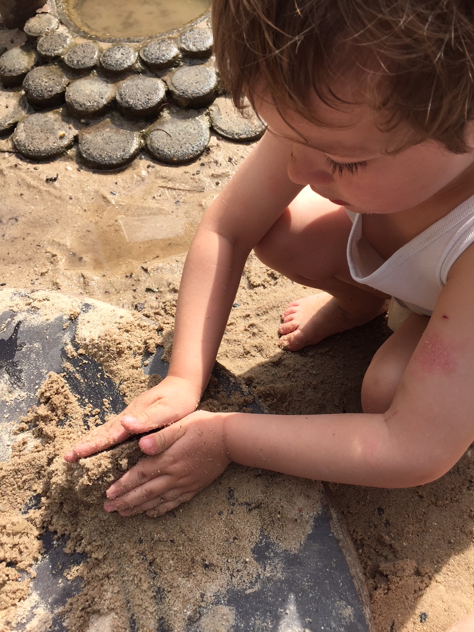 Gut, den Kleinen konnte ich abschreiben: ein Kindergartenkind hatte eine Riesentüte voller Sandspielzeug dabei. Da war es sehr schnell aus mit meinen Stöckchen und Steinchen. Aber gut…situative Aspekte sind häufig nicht planbar und Teil des Lebens. Hab ich eben mit der Zwillingsmama gequatscht.